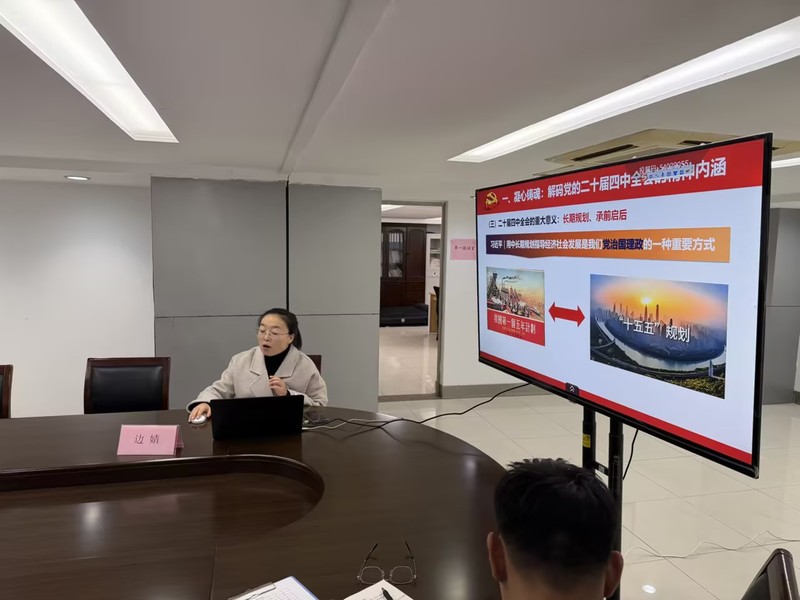会上,孙开宏传达了本次学习的组织、学习内容、学习形式及要求等情况。学习中,学校宣讲团成员、马克思主义学院副院长边婧副教授作了题为《深学笃行党的二十届四中全会精神,奋力开创中国式现代化建设新局面》辅导讲座。她首先围绕党中央制定的“五年计划或规划”的历史背景、重要意义,党的二十届四中全会公报内容概述,进行了阐释,重点解读了全会精神的实质内涵、重大意义、指导思想、国家“十五五”规划的目标与原则,提出“学什么、怎么学”全会精神的指导性意见。