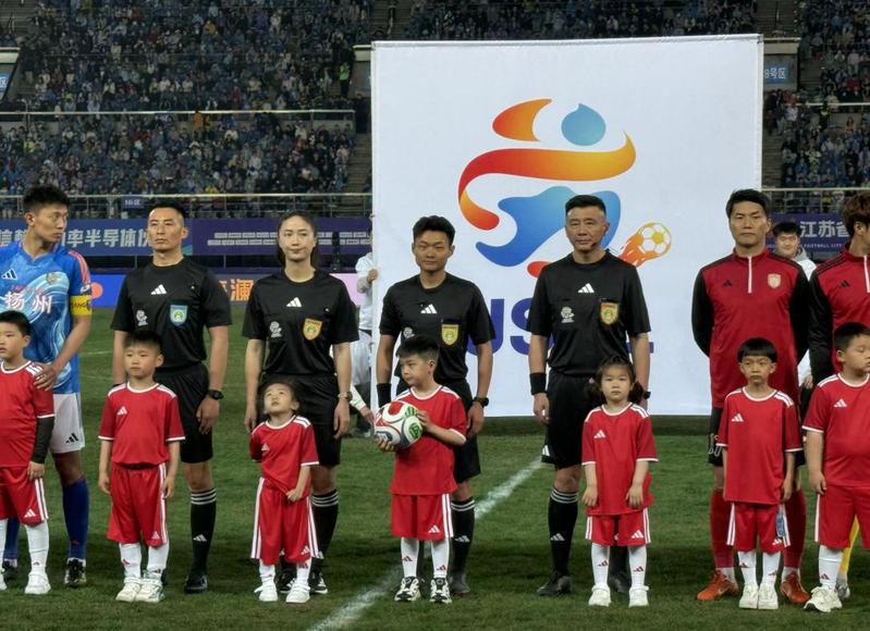 4月11日晚,2026年江苏省城市足球联赛(简称苏超)首轮焦点战——扬州队主场对阵苏州队的比赛在扬州体育公园体育场打响。我校教师、足球国家级裁判员陆爽受邀担任本场比赛主裁判,凭借专业执裁水平与“微笑执法”风格,圆满完成赛事执法工作。